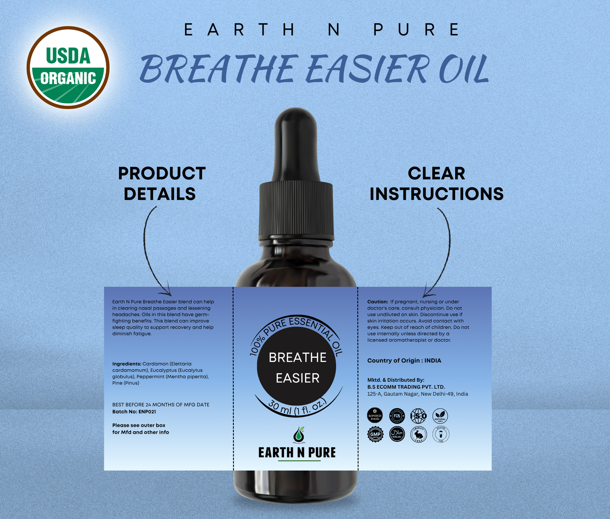 Earth N Pure Breathe Easier Essential Oil Blend – Respiratory Aromatherapy & Diffuser Oil