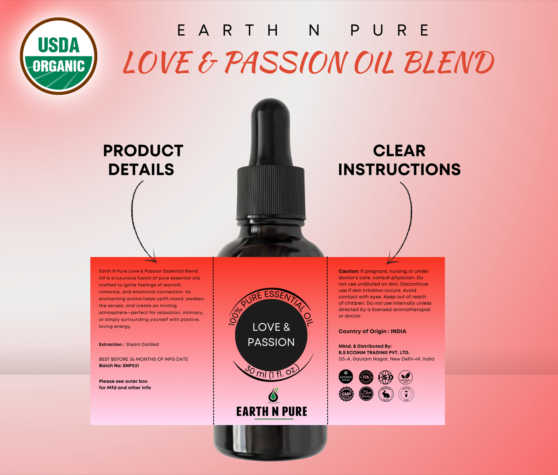 Earth N Pure Love & Passion Essential Oil Blend – Romantic Aroma Oil for Mood Uplift & Relaxation