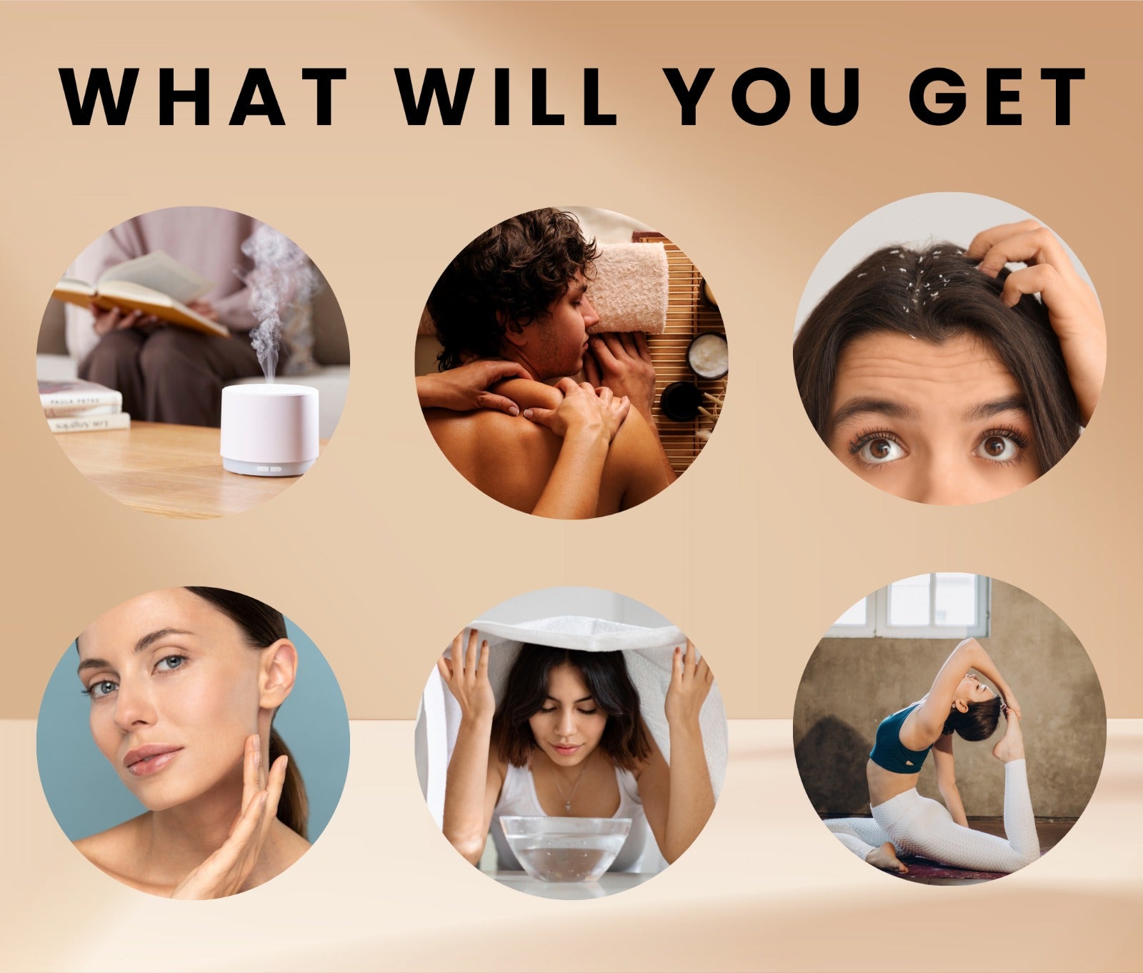 ✅Skin Care: Tea tree oil helps treat acne and skin infections, eucalyptus oil has antibacterial properties, and peppermint oil provides a cooling effect. Together, they support a clear and healthy complexion.