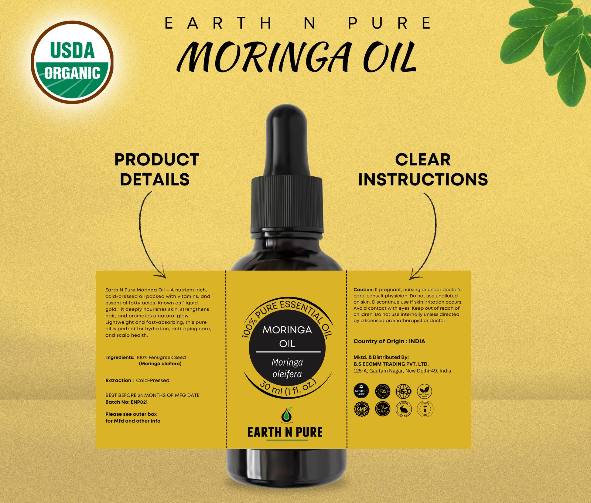 Earth n Pure Moringa Oil for Healthy Skin & Hair