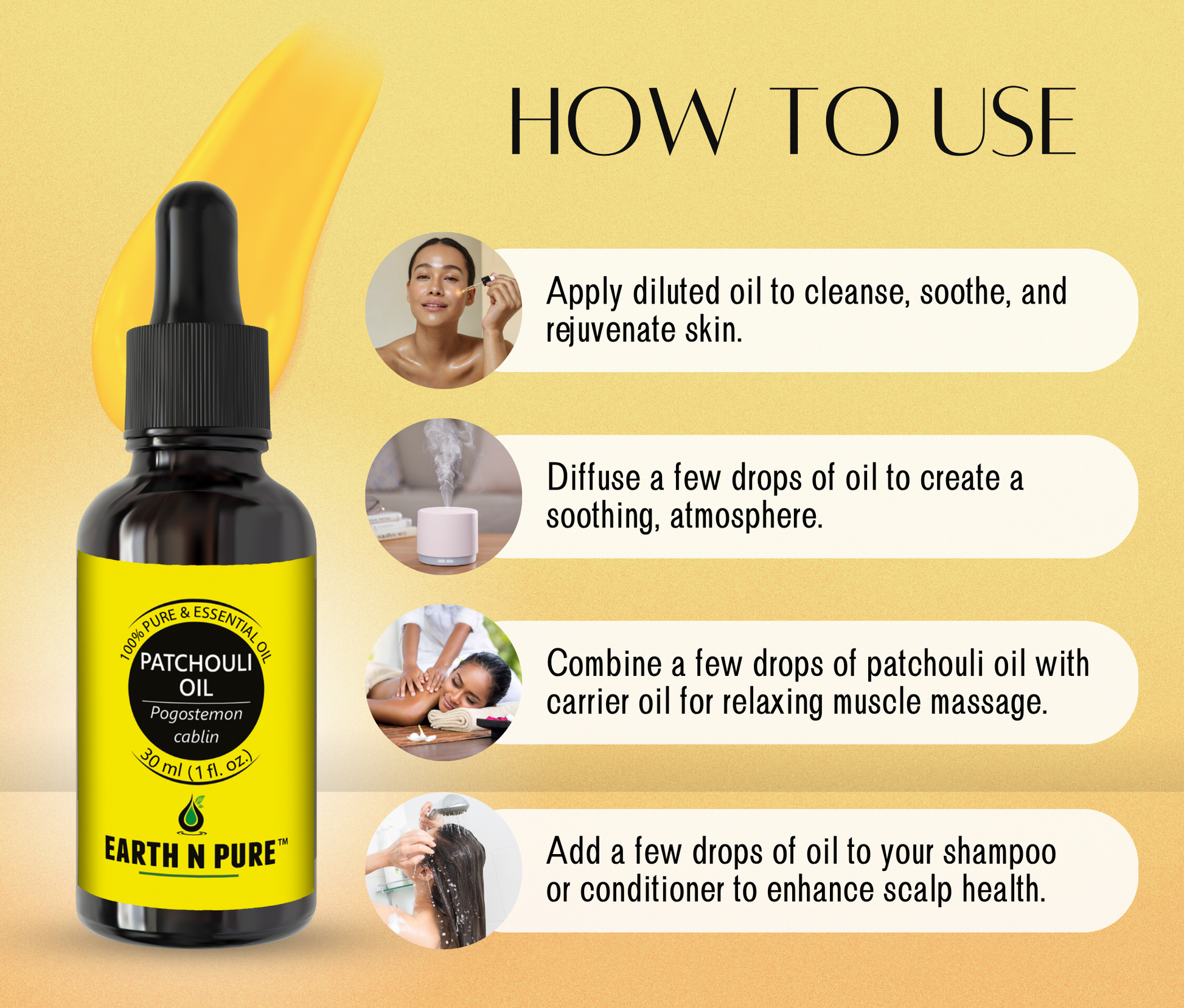 Earth N Pure Patchouli Essential Oil – 100% Pure & Natural Patchouli Oil for Aromatherapy, Diffusers & Skincare