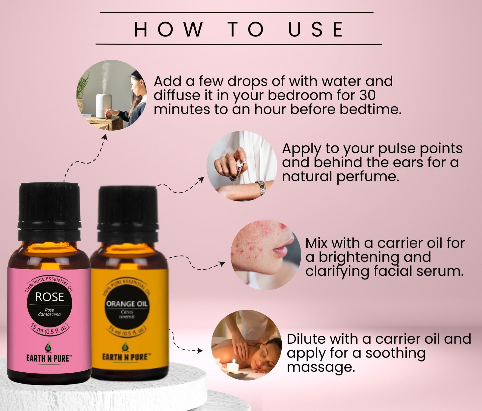 ✅Skin Care: Orange oil helps brighten and even out skin tone with its high vitamin C content, while rose oil hydrates and rejuvenates the skin. Their combination is ideal for promoting a radiant and youthful complexion.